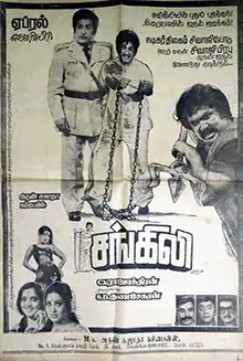 Sangili (transl.Chain) is a 1982 Indian Tamil-language action drama film, directed by C. V. Rajendran and produced by S. D. Gunasekaran. The film stars Sivaji Ganesan, Prabhu (in his debut film appearance), Sripriya, Major Sundarrajan, Sumithra and M. N. Nambiar.[1] It is a remake of the 1976 Hindi film Kalicharan.[2] The film was released on 14 April 1982.