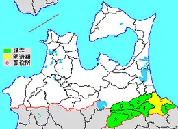 | Odate-mura | Odate-mura | Odate-mura | Odate-mura | September 10, 1958 merged with Hachinohe-shi | |||||