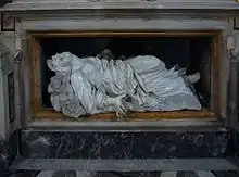 The first chapel to the right, near the entrance, has a painting of St John the Baptist by Pier Francesco Mola. While the last chapel on the right has a fresco depicting Scenes from the lives of Saints Carlo Borromeo and Filippo Neri by Lazzaro Baldi. The right transept has a painting of St Toribio (1726) by Francesco Trevisani. The left transept has a Madonna of the Rosary also by Baldi, and the tomb of Cardinal and philologist Angelo Mai by the late neoclassical sculptor Giovanni Maria Benzoni. The last chapel to the left, is dedicated to St Jerome, and has an altarpiece depicting this saint by Domenichino. The chalice used by the saint was said to be housed in this chapel. The other chapel has a Saints Giorgio and Bishop Publio by Étienne Parrocel.[5]