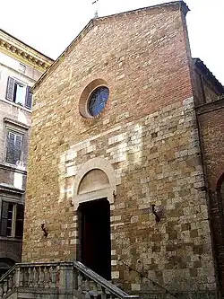 Sant’Andrea Apostolo is a Roman Catholic church located on Via dei Montanini 141, near the intersection with Via Giuseppe Garibaldi, in the terzo of Camollia, in the city of Siena, region of Tuscany, Italy. 43°19′24″N 11°19′41″E / 43.323455°N 11.328143°E