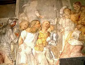 Frescos of Daniel dragged before Nebuchadnezzar (Right wall)