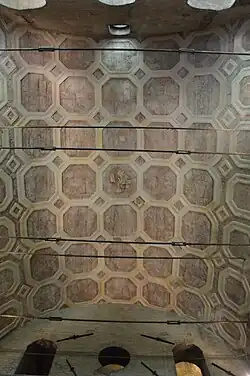 The original construction on the site was a pagan temple or perhaps a tomb from around 160 AD. It is thought to have been dedicated to Ceres and Faustina, wife of Antoninus Pius, although one early historian, Pompilio Totti, believed that it was dedicated to Bacchus.[1] The site lies on land that was formerly part of the Triopio, an estate owned by the Roman senator of Greek origin, Herodes Atticus and his wife Aspasia Annia Regilla. It is thought that the temple was also dedicated to her by her husband after her death at the hands of one of his freed slaves.[2]