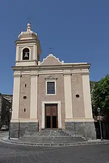The church was built between 1725 and 1730 in order to replace a more ancient building, which dated back to the middle of 16th century,[1] which was damaged by the earthquake of 1693; it had been the seat of the brotherhood since its birth in 1574. The new building was realised thanks to an amount of money given away by a priest, Giacinto Giglio, governor pro tempore of the brotherhood. The new seat was consecrated on 6 October 1730. Around the middle of the eighteenth century the facade and the bell-tower were built. Between 1774 and 1792 the marble altars were constructed, while the marble inlaid floor was constructed about 1803−04. The building was damaged by English air raids during the summer of 1943. Repairs were made in the years after the war. The church was damaged again by the earthquakes of 1990 and 2002. Thanks to the restoration work, funded by the Sicilian department of Civil Protection, it was reopened for worship. The church receives the adoration of Saints Alphius, Philadelphus and Cyrinus.