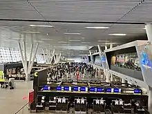 The new international terminal covers more than 200,000 square meters. It involved an investment of $900 million USD. Construction started in August 2016 and ended in March 2021, increasing the total airport capacity from 16 to 30 million passengers per year. The core of the new terminal consists of a central processor (T2M) where passengers undertake arrivals and departures procedures as well as four piers where the departure lounges are located.