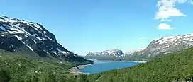 The ecoregion follows the Scandinavian Mountains, and spans 11 degrees of latitude from the south to the north. About two-thirds of the ecoregion is located in Norway, about one-third in Sweden and a small area touches the northwesternmost part of Finland. The WWF definition of the ecoregion spans an area 1,600 km long, with a total area of approximately 243 000 km2.[4] Despite being classified as a tundra ecoregion, the large area outlined by WWF has a huge range in climates and biomes, including many areas with both boreal and even temperate oceanic climate. Examples of temperate areas are the lowland along the fjords such as Hardangerfjord (including Ullensvang, Sognefjord (including Sogndal, Romsdalsfjord (including Molde and also some coastal areas along the mainland further north, such as Brønnøy.