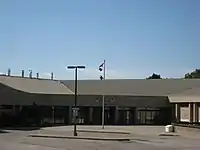 Until 1973, the board offices was also located at Scarborough Municipal Offices at 2100 Eglinton Avenue near Birchmount Road (built after World War II now demolished and site of parking lot). The new SBE administrative offices, located at 2466 Eglinton Avenue East (northside of Eglinton and west of Midland Avenue) and designed by architect Harold Carter, were built in 1954 and administrative operations were relocated in 1973. The former building was declared redundant by 1986 and was replaced by Rainbow Village condos in 1990.[32]