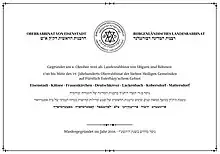 Since 2016, he holds the position of Landesrabbiner (district Chief Rabbi) of Lower Austria, Burgenland, Styria and Carinthia as well as Chief Rabbi of the cities Eisenstadt, Graz and Baden bei Wien.[20] The history of the Landesrabbinat in Eisenstadt goes back to the foundation of the Landesrabbinat of Hungary and Bohemia in 1693, whose first Landesrabbiner was the famous Viennese Chief Rabbi, Shtadlan and court Jew Samson Wertheimer.[21][22] Just like his illustrious predecessor, Hofmeister also exercises his rabbinical functions primarily from Vienna.[23] In 2017, Hofmeister was appointed the first Chief Rabbi of the Austrian Armed Forces in 99 years and as such has since also been responsible for the Jewish military chaplaincy in Austria,[24][25] which had played a significant role in the monarchy but had been dissolved in 1918.[26]