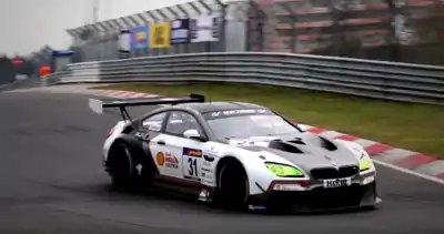 Schubert's works-supported BMW M6 GT3 on the Nürburgring in the VLN, in 2016, driven by Jörg Müller, Marco Wittmann, and Jesse Krohn.