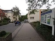 In 1924, a group of Seventh-day Adventists bought a former gym and dance studio from Elizabeth Duncan. The estate was located on the slope of the Odenwald in Darmstadt-Eberstadt. The authorities in the state of Hesse then approved the establishment of a mission school.[7] In 1925, a new building for the school workshops was built. Over the years, the number of workshops grew to nine: locksmith, carpentry, printing, upholstery, mattress manufacturing, knitting and others. Many students earned money from these workshops, with which they used to pay their tuition fees. Also, the number of teaching departments expanded.[7] There was a seminary, a business school, a housekeeping school, preschool and nursing courses for educators and kindergarten teachers. In the 1927–28 school year, the school expanded to include a six-year course of preparation for higher education - today's high school equivalent. The students were prepared for graduation, at Marienhöhe, and entered into tertiary education in the Darmstadt region. The range of educational opportunities and the reputation of the seminary brought more students and pupils to the school each year.[7] In the academic year 1928–29, enrolment peaked at 227 before the Second World War began.