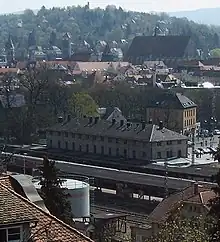 Schwäbisch Gmünd station was opened in 1861 and is located northwest of the city centre of Schwäbisch Gmünd in the German state of Baden-Württemberg. It is on the Stuttgart-Bad Cannstatt–Nördlingen railway and is a stop for InterCity trains.