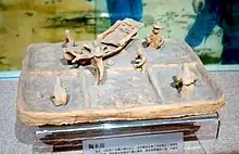 An Eastern-Han pottery model of a rice paddy field with farmers