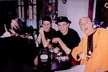 At the end of 1985, H. P. Baxxter and Rick J. Jordan met in Hanover, Germany through a small ad and founded the synthpop/new wave band Celebrate the Nun. While the lead vocals were performed by Baxxter and female vocals were delivered by Baxxter's sister Britt Maxime, Rick J. Jordan took care of the keyboards and sound engineering.[9] The band released their first album Meanwhile in 1989. AllMusic wrote that "During the mid-'80s, numerous synth pop acts dreamed of becoming the next Depeche Mode. Celebrate the Nun could have been buried in the glut of Depeche Mode doppelgangers; however, top-drawer songwriting and consistently catchy hooks lifted Celebrate the Nun above the mass of wannabes".[10] The single "Will You Be There" off Meanwhile peaked at No. 5 on the Billboard Dance/Club play chart on 23 June 1990, whereas the single "She's a Secretary/Strange" peaked at No. 12 on Dance/Club play chart on 8 December of the same year.[8] Slin Tompson, who was the fourth person in the band's original line-up, left the band in 1990 to start a project on his own.[9] In 1991, the band released their second album Continuous, but this was less successful due to synthpop's declining popularity.[10] Two singles were released off the second material, "Patience" and "You Make Me Wonder" both of which went without charting. Not finding the expected success in the New Wave arena, Baxxter kept working at the former Hamburg based Indie label (currently Edel Records) in the Distribution and Sales department where he met Scooter's future manager Jens Thele.[11]