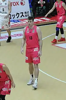 In 2008 Morrison signed with the Albacomp of Hungary, then subsequently spent seasons playing for teams in Canada, Estonia, Ukraine, Poland and Germany.[3] In July 2013 he signed with the Melbourne Tigers for the 2013-14 season of the Australian NBL. He has often worn a black mask to protect his nose since having it broken twice in February 2014, in separate matches against the Perth Wildcats and Adelaide 36ers.[4][5][6] In September 2014 he signed with the Aisin Seahorses Mikawa of the Japanese NBL.[7] After spending one season with the Seahorses, Morrison was signed by the Akita Northern Happinets of the bj league, a rival league to the NBL, in August 2015.[8] He signed for a second season with the Happinets in August 2016, who had joined the first division of the new B.League that was formed from the off-season merger of the NBL and bj league.[1] Morrison suffered a broken cheek bone in October 2016 and subsequently started using a new mask.[9][10]