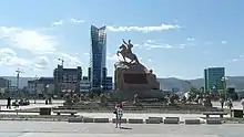 The best known specimen of sculpture of the period of Socialist Realism are the Equestrian statue of Sukhbaatar, one of the leaders of the Revolution of 1921, statues of a shepherd and peasant in front of the building of Ministry of Agriculture and the Zaisan Memorial for the Soviet soldier.