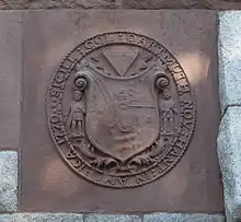 engraven in such a form and with such an inscription as shall be devised by the said Trustees for the time being or by the major part of any seven or more of them convened for the service of the said College as is above directed.[6]
