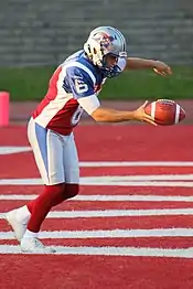 Whyte continued to play well for the Alouettes as he connected on 80.5% of his field goal attempts in 2012 and 82.0% in 2013, where he was named a Division All-Star for the first time in his career.[5] He had his best season as an Alouette in 2014 when he made 41 of 47 field goal attempts for an 87.2% completion rate and had a career-high punting average of 44.9 yards.[5] Despite his excellent season, Whyte fell out of favour with the Alouettes in 2015 as the team opted to dress rookie Boris Bede as the team's kicker due to his stronger leg.[9] Whyte spent the first six games on the reserve roster behind Bede, who performed well enough for Whyte to be released on August 10, 2015.[10][11]