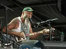 Steven Gene Wold (né Leach; 19 March 1951),[2] commonly known as Seasick Steve, is an American blues musician. He plays mostly personalized guitars and sings, usually about his early life doing casual work.[3] From the late 1960s, he worked as a musician and recording engineer in the US and Europe; he played bass in Shanti and was in a disco band called Crystal Grass as well as other bands.[4] He also pursued other works, including producing an album for Modest Mouse. He achieved his breakthrough, initially in the UK, at the end of 2006 when he appeared on Jools Holland's annual Hootenanny as Seasick Steve.[5] He has since released a number of commercially successful albums, including I Started Out with Nothin and I Still Got Most of It Left, Man from Another Time, and Sonic Soul Surfer.