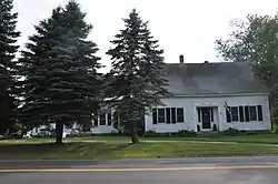 The Seavey House is located south of the village center of Goshen, on the west side of NH 10. It is a 1+1⁄2-story wooden Cape-style house, with a gabled roof and clapboarded exterior. Its structure is framed out of wooden planking 3 inches (7.6 cm) thick, set vertically, with dowels placed horizontally for lateral stability. The main facade is five bays wide, with sash windows arranged symmetrically around an elaborate Greek Revival entrance. The entry is recessed, with sidelight windows immediately flanking the door, and pilasters with peaked lintels outside the recess. The building corners also have pilasters, which rise to an entablature which spans the front. A smaller single-story ell extends to the left at a recess to the main block.[2]
