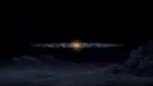 Again there is a fade out and a fade in, this time we are looking at a scene with two spheres, the words "Ten seconds to transmission" are spoken (sampled from the 1989 movie Batman),[6] and a sword starts translating towards the camera. The spheres will display a reflection of the sword as well as a reflection of the aforementioned reflection in the other sphere. The scene was rendered using Future Crew's homemade ray tracing software.