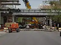 During 2007, the main station entrance was closed for extensive renovation and rebuilding as part of the CTA's Brown Line capacity expansion project. Throughout the renovation period, the station remained open on weekdays but experienced several weekend closures, with entrance to the station through a temporary entrance (which was later converted to an emergency exit) located one block west of the original entrance at Hudson Avenue.