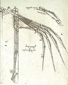Flapping wing mechanism proposed by Leonardo da Vinci in the Codex Atlanticus.