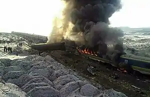 Two trains collided on the main line in Semnan Province between Semnan and Damghan, Iran, on 25 November 2016, resulting in 49 deaths and 103 injuries.[1] There were reported difficulties with the rescue operation due to the incident's remote location 4 km from the nearest station, Haft-Khan,[2] and because only one helicopter could reach the scene immediately to join the rescue operation.[3] It was the deadliest rail disaster in Iran since the Nishapur train disaster in 2004.