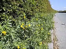 Typical habitats of the species include waste ground, roadsides and cracks in walls and pavements. The population fluctuates considerably from year to year, but overall appears to be declining.[6] Threats include spraying to kill weeds, road widening, and infection by the rust Puccinia lagenophorae Cooke, 1884, which can decimate large stands.[7]