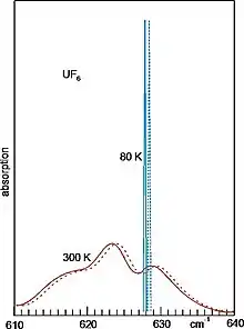 - ↑ Takami, Michio; Oyama, Toshiyuki; Watanabe, Tsunao; Namba, Susumu; Nakane, Ryohei (1984-02-01). "Cold Jet Infrared Absorption Spectroscopy: The ν 3 Band of UF 6". Japanese Journal of Applied Physics. 23 (2A): L88. doi:10.1143/JJAP.23.L88. ISSN 0021-4922. S2CID 93245695.