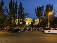 In Yerevan, protesters attempted to take down a barrier and access the parliament building, but were prevented by authorities, who decided to weld the gate. One opposition leader, Karin Tonoyan, urged protesters to start blockading government buildings and also issued a call for a nationwide strike.[129] The protesters chanted "Nikol the traitor".[130] Protesters near Yerevan's parliament building called on deputies to come to their offices and impeach Pashinyan. Former Armenian Defense Minister Seyran Ohanyan reported that 35 opposition MPs signed a document to begin the impeachment procedure against Pashinyan. On the night of 15 September, opposition MPs proceeded to the parliament building to begin the impeachment process against Pashinyan, and were joined by demonstrators.[131]