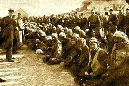 During the attack of Serbian army on Priştina (present-day Pristina) in October 1912, the Albanians (led by Turkish officers) abused the white flag on the city fortress, and this way killed many Serbian soldiers.[14] Then came the brutal retaliation of the Serbian army. Reports said that immediately upon entering the city, the Serbian army began hunting the Albanians and created a bloodshed by decimating the Albanian population of Pristina.[15] The number of Albanians of Pristina killed in the early days of the Serbian government is estimated at 5,000.[14][26]