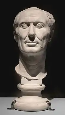 She gained fame as the mistress of Julius Caesar,[5] whom her son Brutus and son-in-law Gaius Cassius Longinus would assassinate in 44 BC. Her affair with Caesar seems to have been publicly known in Rome at the time.[5] Plutarch stated that she in turn was madly in love with Caesar.[6] The relationship between the two probably started in 59, after the death of Servilia's second husband[7] although Plutarch implied it began when they were teenagers.[6]