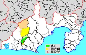 With the merger of the town of Haruno into the city of Hamamatsu on July 1, 2005, the district is now contiguous only with Mori Town.