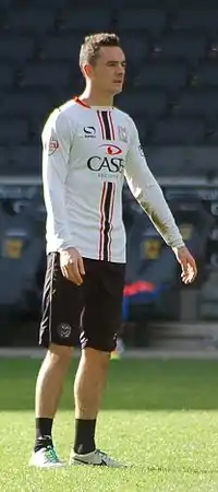 He spent the opening half of the 2008 season on loan from Drogheda United at Finn Harps following their promotion to the League of Ireland Premier Division in 2007 via the playoffs. He made 14 appearances, scoring two goals.[4] His first goal came in the opening match of the season as Harps beat fellow Premier Division newcomers Cobh Ramblers 2–1 in Finn Park.[5] He followed that up with his second in three games as Harps beat U.C.D. 1–0.[6] Failing to score in the rest of his appearances for Harps, his loan ended in Summer 2008 as he returned to Drogheda United for the remainder of the season.[4]