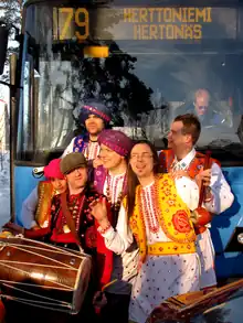 Shava is a band from Finland. The band calls its music Suomibhangra (Finnish Bhangra), a genre created by the band itself.[1] Finnish Bhangra is a fusion of Finnish lyrics and Punjabi music. In 2010, the band released its first album, Betoninen kotimaani, which was voted as the audience favorite for the Folk Music Record Of The Year 2010 in Finland.[2] The band has toured Finland, Italy, Germany, Switzerland, France, United Kingdom, Belgium, Netherlands,[3] Canada[4] and Iceland.[5]