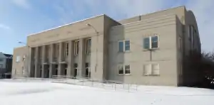 The Sheboygan Municipal Auditorium and Armory was designed by Sheboygan architect Edgar Stubenrauch[1] and built in 1941 as a Works Progress Administration (WPA) project.[2][3] The WPA was an organization created by an executive order by President Franklin D. Roosevelt in 1935. The Sheboygan Armory, the Sheboygan County Courthouse, the city's main post office, Farnsworth Jr. High/Middle School and the original Sheboygan North High School building (now Urban Middle School) were a part of the 116,000 buildings that were built by WPA.