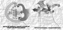 During the early morning hours of October 13, Brown directed Lazear to guide his troops south of Shelby's camp, execute a northern turn into Marshall, assume a defensive stance facing east, and get ready to intercept Shelby at Marshall. By approximately 3 A.M., Lazear was prepared for Shelby's arrival as he entered Marshall.[43]