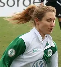 Shelley Ann Thompson (born 8 February 1984) is a German football striker. Between 2001 and 2013, she played for several Bundesliga teams, Atlanta Beat (WPS) and Regis University Rangers (Denver, Colorado), and has scored 1 goal in 2 caps for the German national team. She is of South African and Zimbabwean descent.