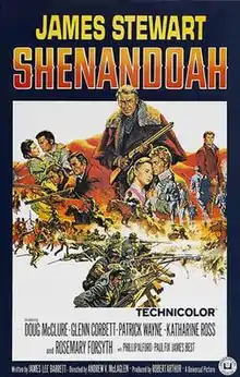 Shenandoah is a 1965 American film set during the American Civil War starring James Stewart and featuring Doug McClure, Glenn Corbett, Patrick Wayne, and, in their film debuts, Katharine Ross and Rosemary Forsyth. The picture was directed by Andrew V. McLaglen.[2] The American folk song "Oh Shenandoah" features prominently in the film's soundtrack.