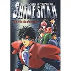 The Special Duty Combat Unit Shinesman (特務戦隊シャインズマン, Tokumu Sentai Shainzuman) is a Japanese anime OVA of two episodes. It was released in Japan on February 21, 1996. It is based on the Manga comic art of Kaimu Tachibana and Hideki Sonoda, and directed by Shinya Sadamitsu. The character designer was Akiharu Ishii. The video was produced by Gakken, Aniplex, and Movic. The film has been dubbed into English by Media Blasters, and released on DVD in North America.
