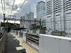 - ↑ "京急汐入駅にホームドア設置" [Platform door installed at Keikyu Shioiri Station]. Japan Railfan Magazine Online. 15 March 2022. Archived from the original on 15 March 2022. Retrieved 15 March 2022.