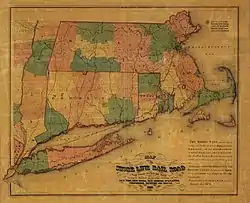 ![]() 1860 map of the combined "Shore Line Rail Road" route between New York City and Boston | |