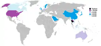 10. 1 2 3 4 5 6 7 8 9 10 11 12 13 14 15 16 "รายงานจำนวนประมาณการคนไทยในต่างประเทศ 2012" (PDF). consular.go.th (in Thai). March 5, 2012. Archived from the original (PDF) on 2017-02-14.