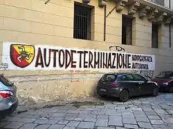 Sicilian nationalism, or Sicilianism, is a movement in the autonomous Italian region of Sicily, as well as the Sicilian diaspora, which seeks greater autonomy or outright independence[1] from Italy, and/or promotes further inclusion of the Sicilian identity, culture, history, and linguistic variety.[2][3]