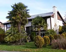 Many non-native plants also occur, including many invasive species such as English ivy, Scotch broom, laurel-leafed daphne, Himalayan blackberry, chicory, Queen Anne's lace, and red clover. Long-established exotic trees include London plane, horsechestnut, flowering cherry, flowering plum, Norway maple, sycamore maple, Japanese maple, catalpa and tulip tree. In recent years the American sweetgum, Freeman maple and Chinese windmill palm have become popular.