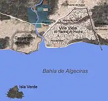 - ↑ Álvarez, Rafael Jiménez-Camino; Guerra, José María Tomassetti (2005). "'Allende el río...' sobre la ubicación de las villas de Algeciras en la Edad Media". Boletín de arqueología Yazirí: 435–457.