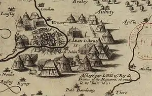 The siege of Saint-Jean-d'Angély (French: siège de Saint-Jean-d'Angély) was a siege (military blockade), accomplished by the young French king Louis XIII in 1621, against the Protestant stronghold of Saint-Jean-d'Angély led by Rohan's brother Benjamin de Rohan, duc de Soubise.[1] Saint-Jean-d'Angély was a strategic city controlling the approach to the Huguenot stronghold of La Rochelle.
