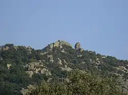 The Sierra de Hoyo is distributed forming a sort of inverted arc, whose ends are guarded by the peaks of Navalospinos (1171 m) —to the northeast—, El Picazo (1268 m) ―to the south― and Peña Cardín (1130 m) —to the northwest—. In its southeastern foothills there are different mountains that serve as a transition to El Pardo, as in the case of La Solana (1002 m) in Hoyo de Manzanares and, to the south, the occasional isolated formation rises, as in the case of Canto del Pico (1005.887 m).[2] The latter, within Torrelodones, which is one of the most important granite formations in the surroundings of the sierra, is dominated by a modernist palace, which was owned by Francisco Franco, to which it gives its name.