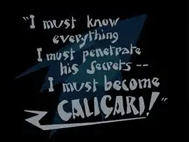Cesare (Conrad Veidt) awakens in The Cabinet of Dr. Caligari. The amber tint indicates a daylight setting.
