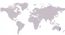Stout whiting are endemic to Australia, and consist of two apparently disjunct populations; one on the eastern seaboard, the other on the western seaboard. The eastern population has a wider distribution, inhabiting waters from Bustard Head, Queensland to southern New South Wales. The western population exists from Shark Bay in the north to Fremantle in the south.[5] In his 1985 revision of the Sillaginidae, McKay reported the species from as far north as the Gulf of Carpentaria,[2] but did not mention any specimen from this far north in his follow-up catalogue for the FAO.[8]