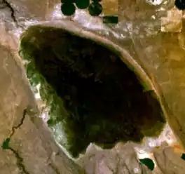 Silver Lake is an intermittent high-desert lake in Lake County, Oregon, United States. It is 6 miles (10 km) east of the community of Silver Lake. It is unknown who first gave the lake its descriptive name. Central Oregon residents attribute it to John C. Frémont, although no proof has been found, and he would not have seen the lake on his first visit to Oregon in 1843.[3] The Klamath called the lake Kalpshi, which may have been derived from the word kalapsh, meaning a decayed log.[3] The name was used because of the petrified wood near the lake.[3]
